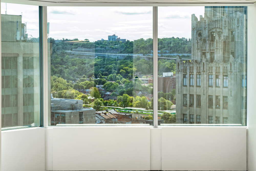 Office space for lease in Downtown Hamilton. 2,010 square feet available in the core of downtown Hamilton. Located at the corner of King Street West and MacNab Street, 21 King has access to ample amenities like Jackson Square, Macnab Street Terminal, James Street North and more.  Minutes from Gore Park.
