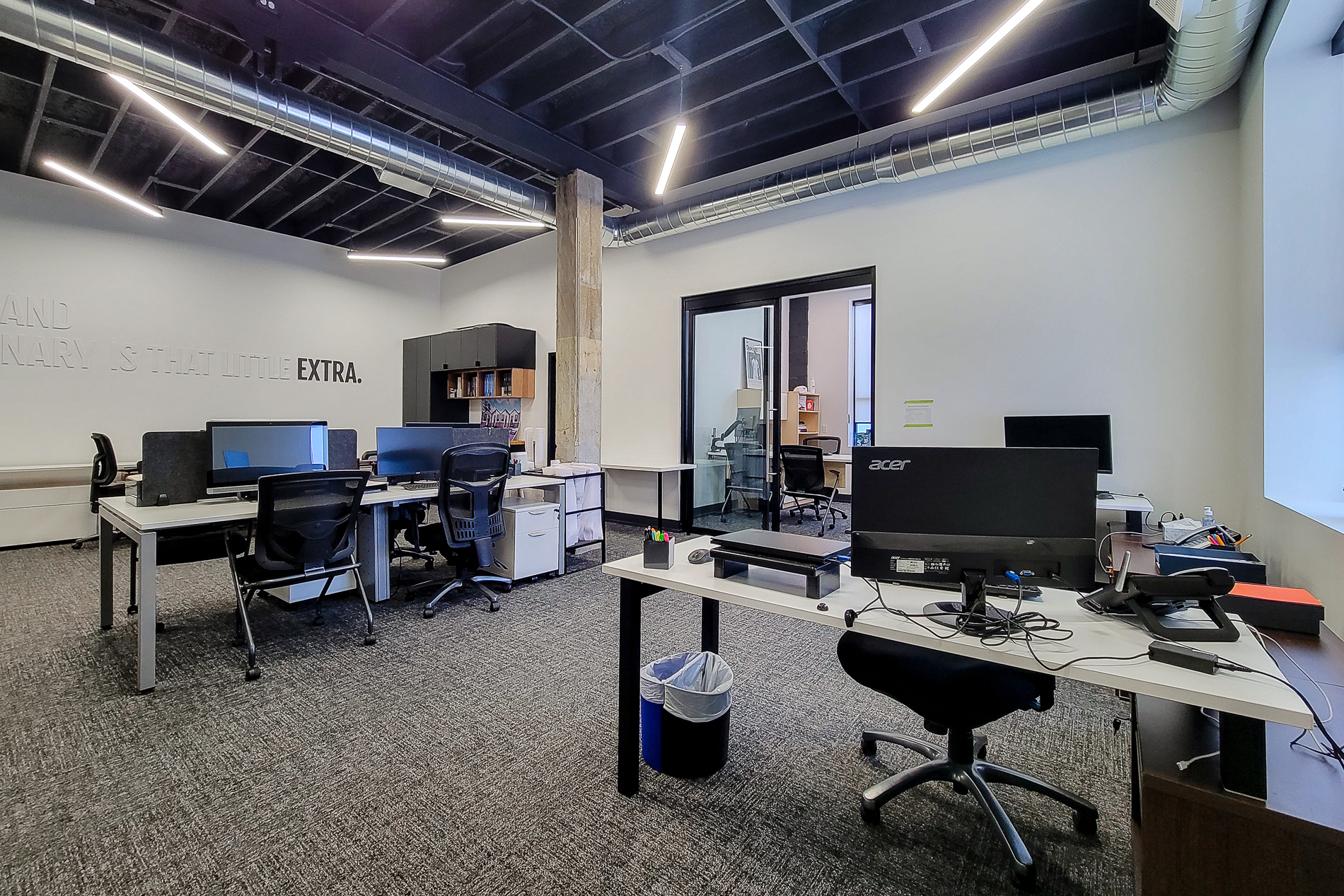 Industrial / office building for lease in Hamilton. Modern flex industrial and office space available for lease, ideally located near major highways and local amenities. This meticulously upgraded building offers a professional, move-in-ready environment, with significant improvements completed over the past seven years, including a new roof, siding, windows, doors, HVAC systems, plumbing, electrical, insulation, polished concrete floors, LED lighting, and a repaved driveway. Interior upgrades include a second bathroom, private offices, boardrooms, and a sleek new kitchen—making this a turnkey solution for businesses seeking quality and convenience.