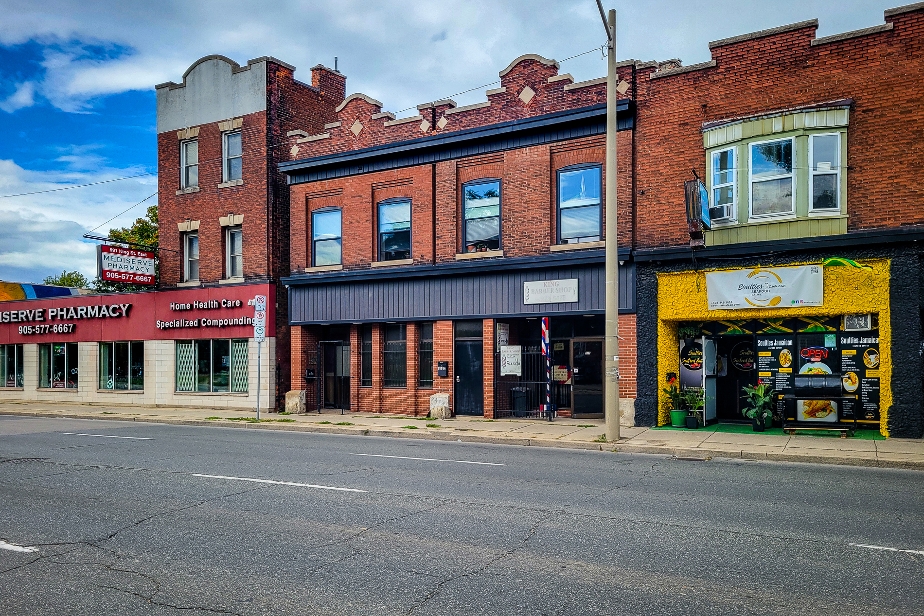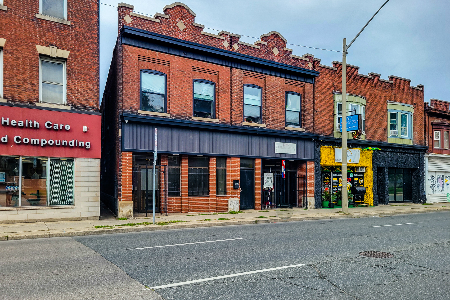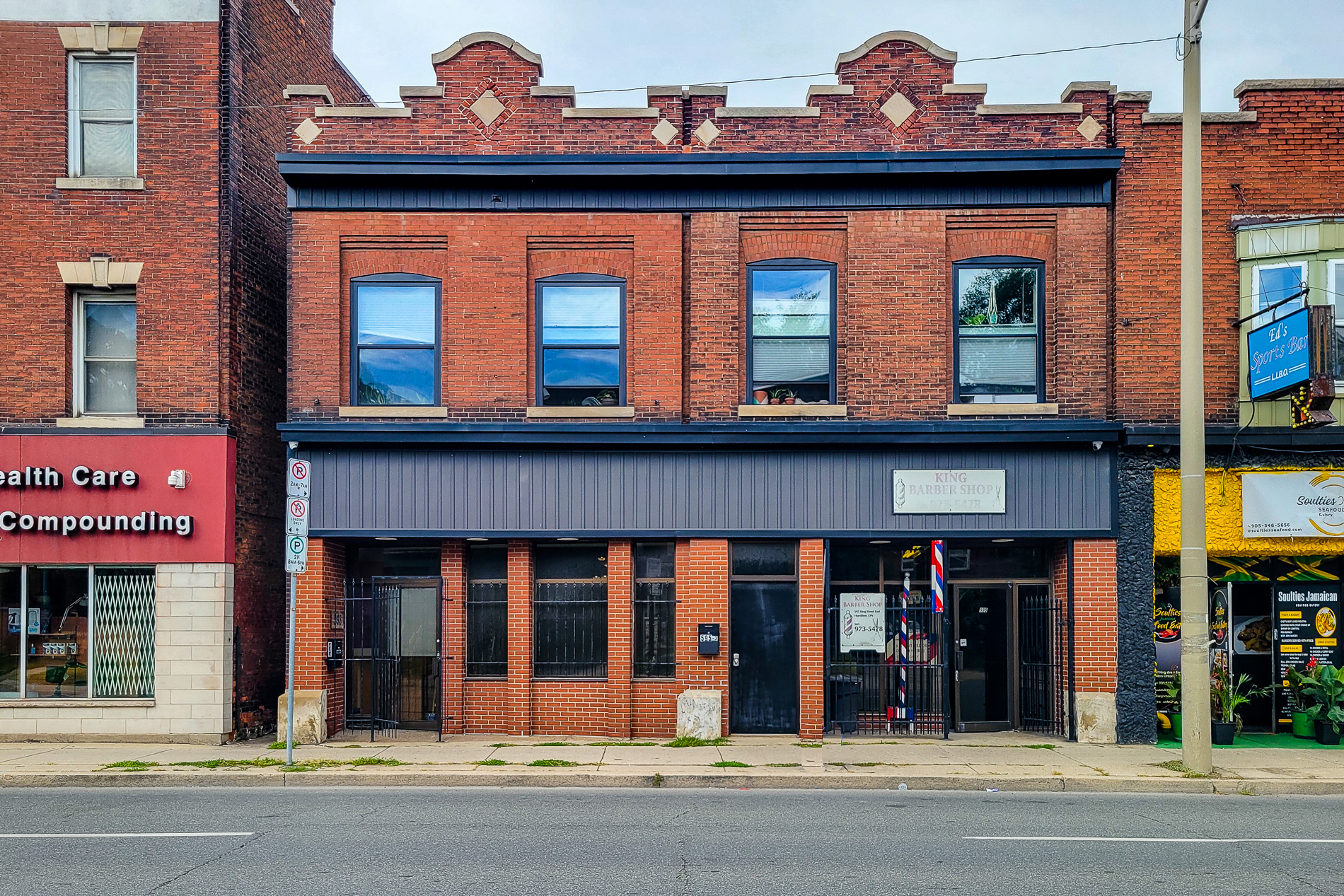 Mixed use office / retail / residential unit property for sale in Hamilton. Live, work, and invest at 593—595 King Street East. This mixed-use downtown property offers 3 units with 5 parking spaces along the future LRT corridor. The spacious 3,223 SF live-work unit with rooftop deck, full basement, and original bank vault will be vacant on closing, ideal for an owner-occupier or conversion back to commercial use. Additional income comes from a long-standing barbershop and a beautifully maintained 1-bedroom apartment with quality tenants. Unique character features include pressed-metal ceilings and turn-of-the-century details. Flexible zoning, ample power, and prime location make this a rare Hamilton opportunity. || TOTAL PARKING SPACES: 5 ||