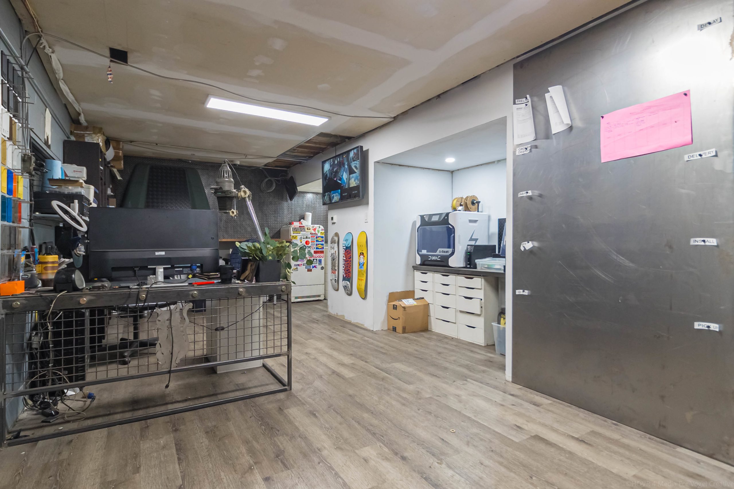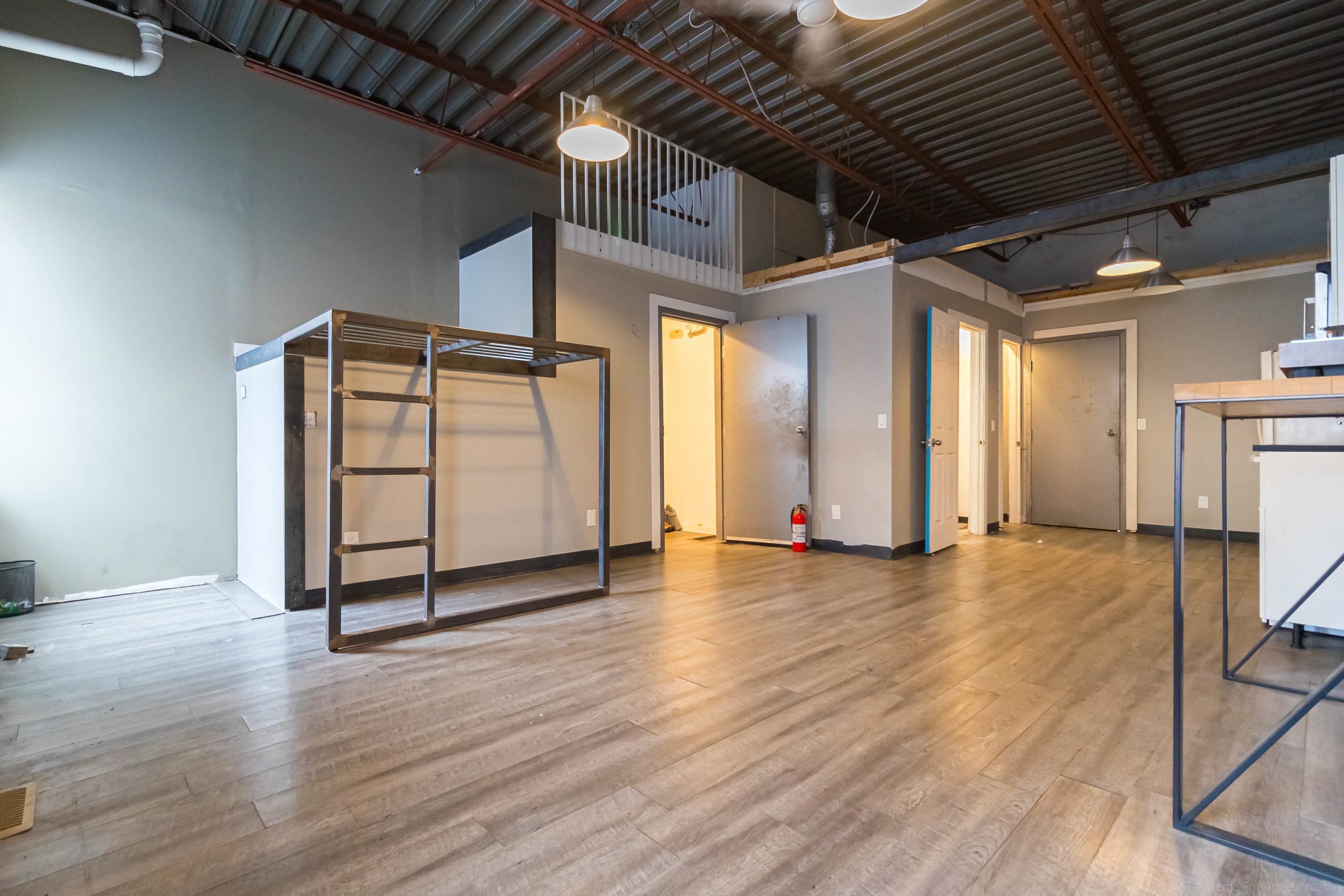 Retail property for sale in Hamilton. This versatile multi-use property offers a prime location with a large gated lot, ideal for retail, office, light industrial, and a variety of other permitted uses under T0C1 zoning. The 107’ by 95’ lot provides ample space for on-site parking or outdoor storage. Situated on Sanford Avenue just off the busy King Street East transit corridor in Hamilton, the property benefits from excellent visibility and connectivity. The building consists of two commercial units and two residential units. The main commercial unit features a spacious bay with five drive-in garage doors—one measuring approximately 12’ high by 9’6” wide, and four measuring approximately 10’ high by 9’6” wide—along with a floor drainage system and impressive ceiling heights just under 15 feet. A second open-concept commercial unit includes a washroom and can be easily combined with the main unit to create one expansive ground-floor space, offering exceptional flexibility for a wide range of uses. The entire space is vacant and ready for immediate possession. The second floor includes two studio residential apartments. Buyers are advised to conduct their own due diligence regarding the legality of the residential units. This property is well suited for an owner-user, investor, or developer seeking flexibility and income potential. Combining strong commercial utility with residential upside, this property represents a compelling opportunity in the heart of Hamilton.