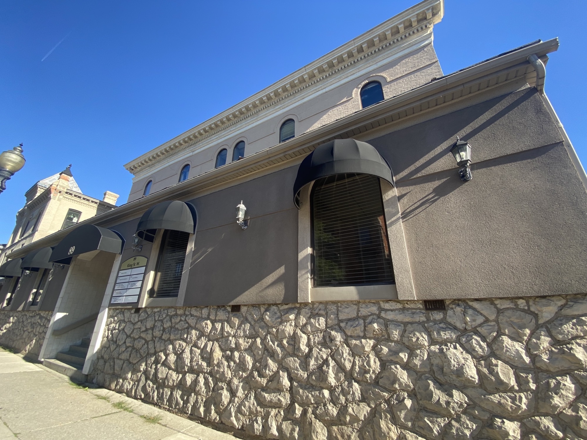 Office space for lease in downtown Dundas. Situated in the heart of Dundas, 89 King St W is surrounded by many other businesses and homes, making it convenient for you and clients. The unit is lower level, with good sized windows for natural light. There is a pay parking lot behind the building and street parking out front, while also being pedestrian friendly and close to HSR bus stops. || WASHROOMS: 2 ||